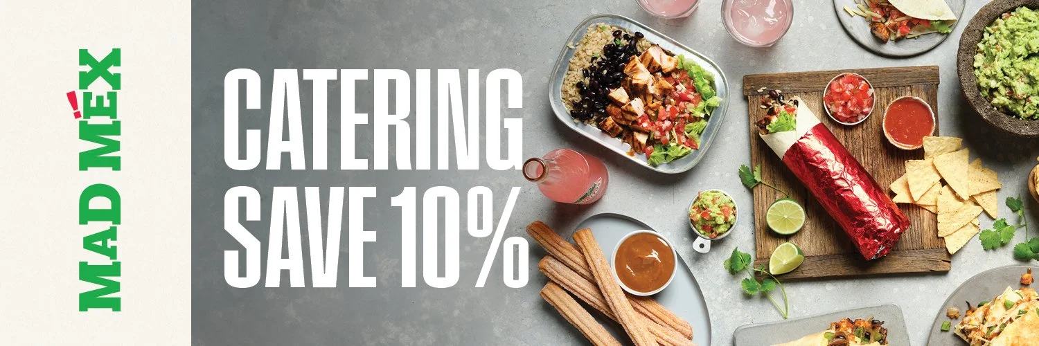 Stanhope Amigos! Fuel your next fiesta, work lunch or too-busy-to-cook occasion with Mad Mex catering! It's bold, fresh Mexican catering made easy, with their iconic red foil Burritos, Naked Burritos, churros and a huge selection of sides and toppings ready to order and make it your way.